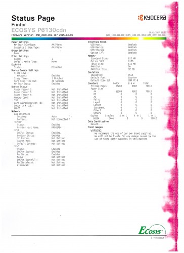 Здравствуйте. Kyocera p6130cdn. Аппарат прошел 70000 и стерся фотовал ,стоявший на черном цвете. Остальные...