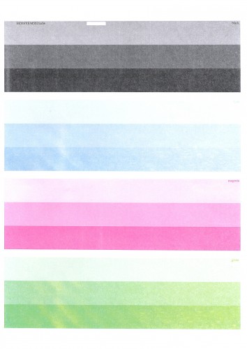 Что конкретно делать в Вашем случае - сказать сложно. Мы придерживаемся правила, что производитель гарантирует совместную работу только своих рекомендованных пар (носитель + тонер). Как будет работать носитель VF-04D от TOMOEGAWA с тонером производства Mitsubishi мы не проверяли и производитель носителя не сообщал. У Вас три варианта - досыпать носитель VF-04D без замены тонера, менять только тонер либо менять тонер в картридже и смесь в блоке проявке на пару (VF-04D + VF-05). Мы бы начали с эксперимента по добавлению носителя в синий цвет, при этом предварительно нужно взвесить блоки проявки. Излишек носителя в смеси тоже не есть хорошо. Судя по тестам, начинать надо с синего и зеленого цветов. Можно поступить более радикально - сразу заменить тонер и девелопер в синем, как наиболее проблемном, посмотреть результат, а потом уже пробовать добавлять носитель в другие цвета. При замене смеси в синем блоке проявки необходимо не забыть взвесить пустой вычищенный БП, чтобы затем корректно контролировать вес смеси в блоке проявки других цветов.