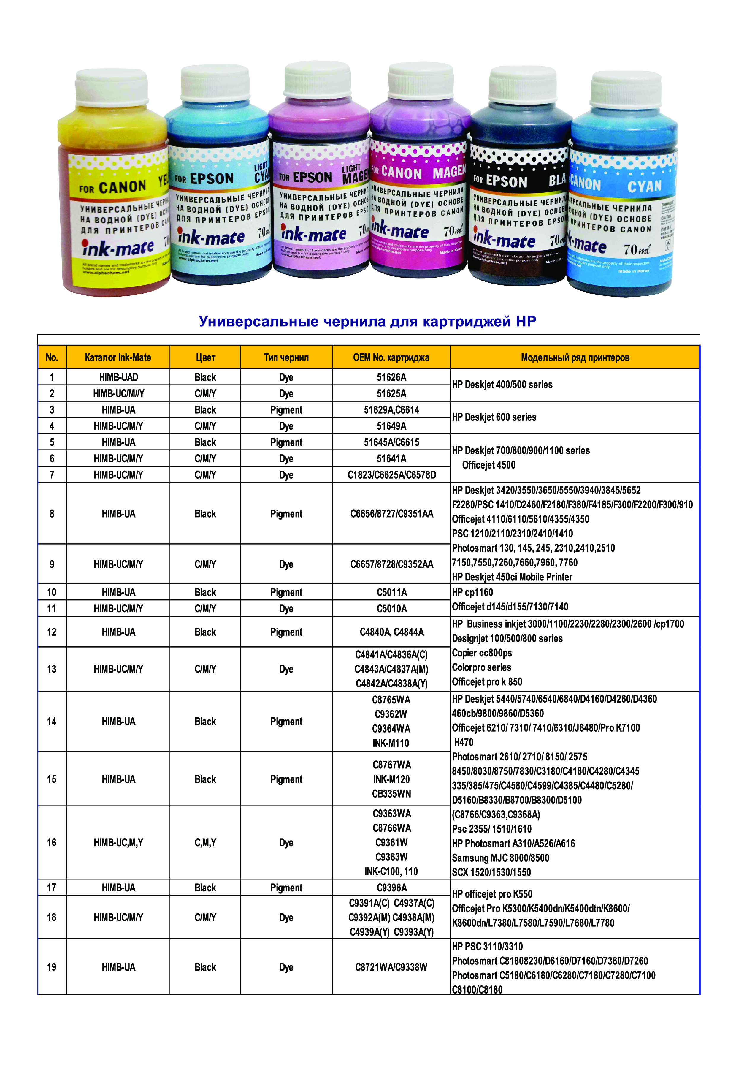 2 Универсальные чернила Inkmate с таблицей совместимости