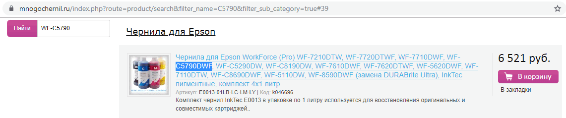 У вас в прайс-листе для новых МФУ Epson WF-C5790DWF (UltraBrite Ultra) указаны только чернила Ink-Mate...